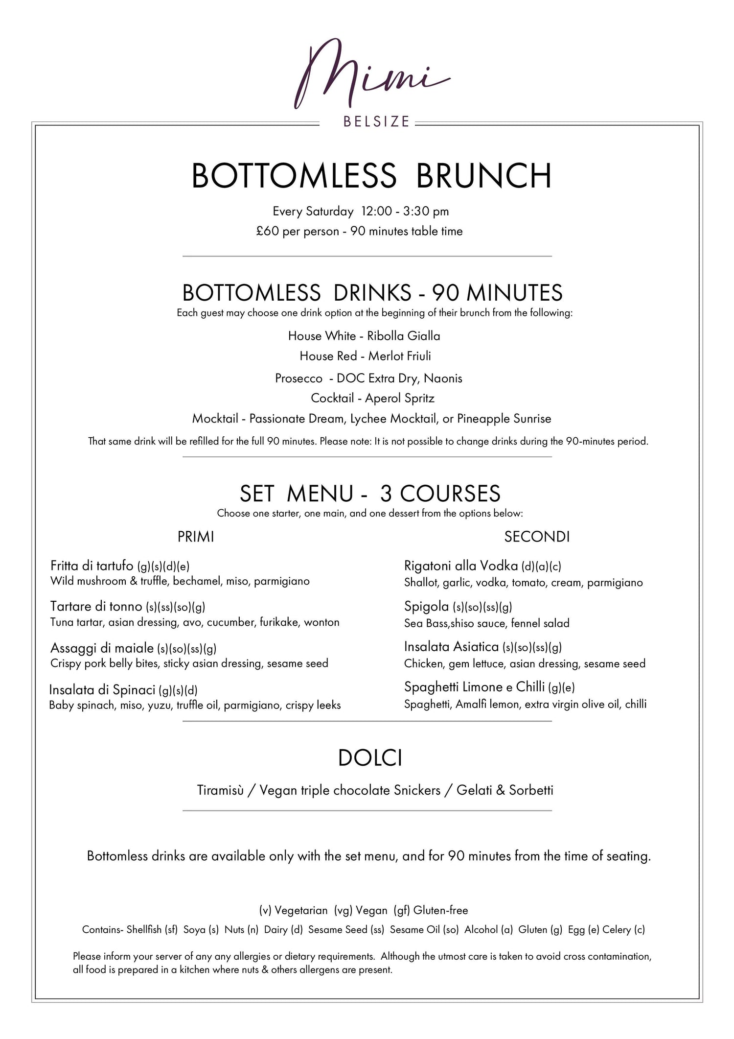 Join us at Mimi Belsize for a luxurious Bottomless Brunch