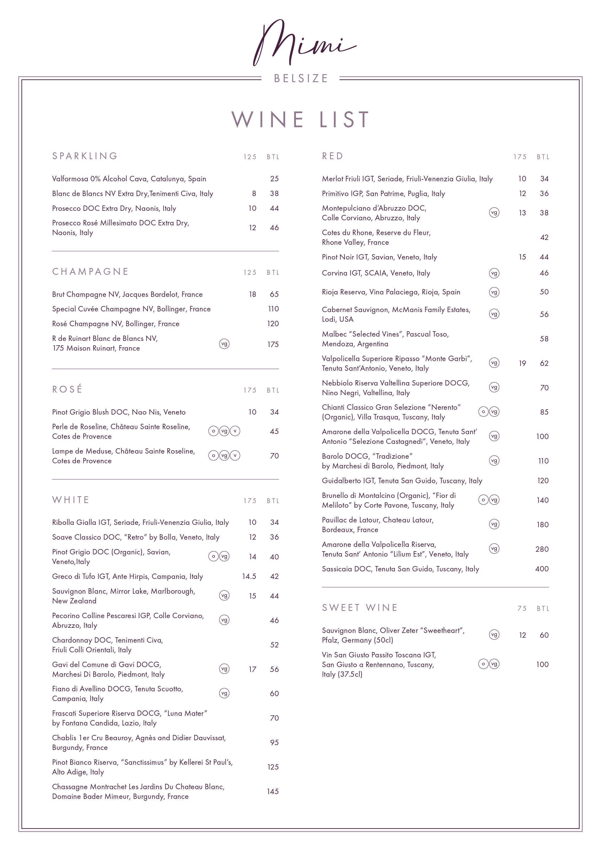 • Wine List